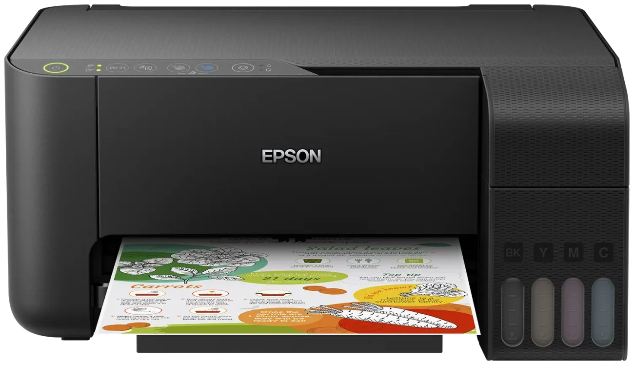 برنتر Epson إبسون L3150، طابعة printer متميزة واي فاي Wi-Fi، فئة EcoTank 3-in-1 ، من خلال إمكانية الاتصال عبر Wi-Fi وWi-Fi Direct، تستطيع الطابعة تلقي مستندات للطباعة من الأجهزة الذكية باستخدام تطبيق Epson iPrint ،وتستطيع هذه البرنتر ايبسون l3150 أن تحقق لك تكلفة منخفضة للغاية لكل صفحة، وهي تنتج ما يصل إلى 8,100 صفحة بالحبر الأسود و6,500 صفحة.